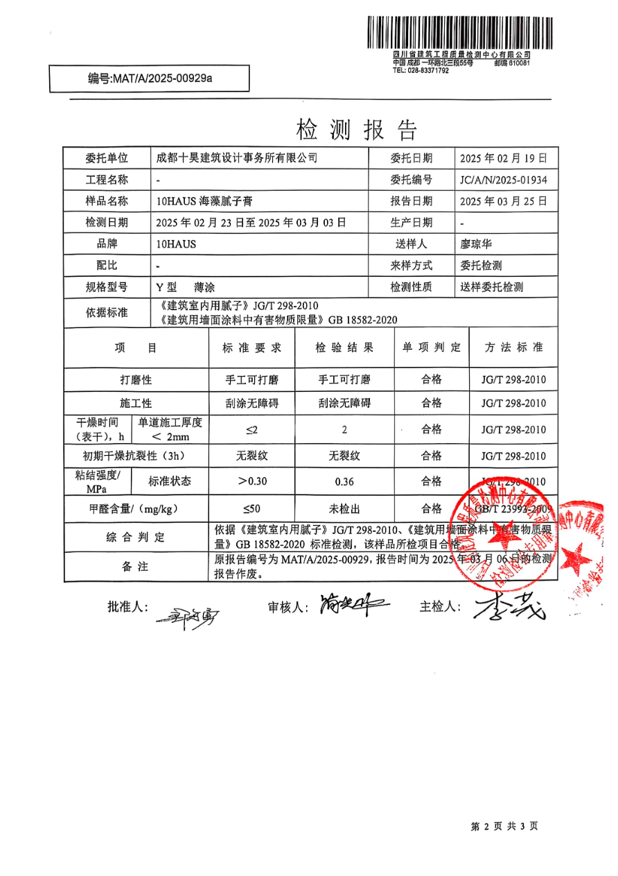 本产品是由10HAUS技术研发部研发的超强配方内墙刮墙膩子,是一种理想的高品质墙体找平材料。Ph值为8.5-9,属于弱碱性。适用于墙面层腻子精细化找平。质感细腻、不易粉化、抗裂性好、施工顺畅、易打磨,打磨后墙面砂痕残留较小,是配合乳胶漆饰面最佳基层找平材料,使乳胶漆干燥后表面丰满、质感细腻、手感顺滑。本产品各项指标均通过中国环境标志产品认证,属绿色环保产品。