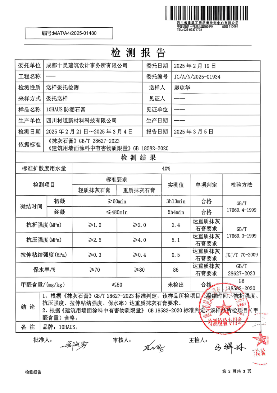 本产品是由石膏、水洗砂及多种添加剂混合而成的通用型室内墙面基层抹灰材料。既具有建筑石膏早强、快硬、防潮等特点,又具有易施工,和易性好、强度高、不空鼓、不开裂、施工速度快等特点,适用于厚层抹灰找平。10HAUS防潮石膏通过了中国环境标准产品认证,是绿色环保产品。