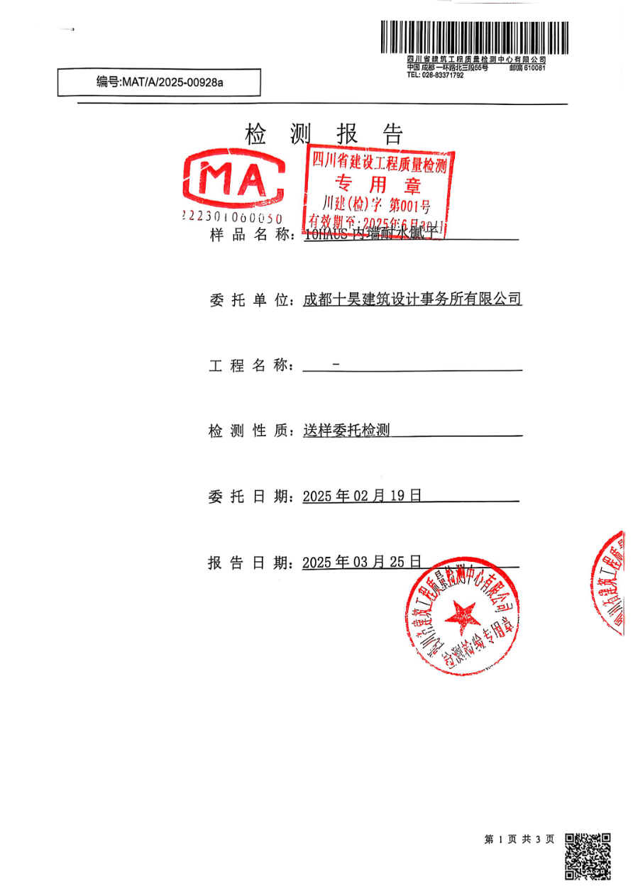 优良的耐候性,施工性能优异、良好的耐水、防潮、透气性、优良的亲和性,本产品通过中国环境标志产品认证,绿色环保。